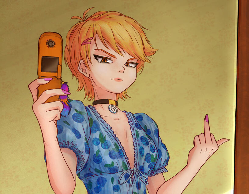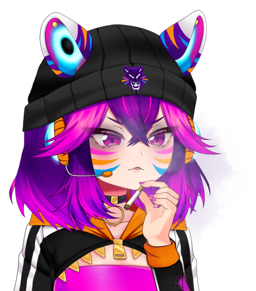 Karen is a naturally reserved and quiet person, but when she takes on the persona of Taiga, her confidence skyrockets! She will often reiterate how cool or attractive she is. The persona of Taiga is a fun form of escapism for Karen, whose life is not going well at the moment.She never had an opporunity during her failed marriage to just play around, have hobbies, or be herself because of her strict husband. As a result, she's somewhat naive when it comes to zoomer culture and tech as she is an older millennial. She makes up for it by having a lot of fun teasing her viewers and being a bit of a tsundere.When overwhlemed, her persona slips and her repressed kind and caring nature shines through, but she will play off any vulnerability by being even more of a little shit.